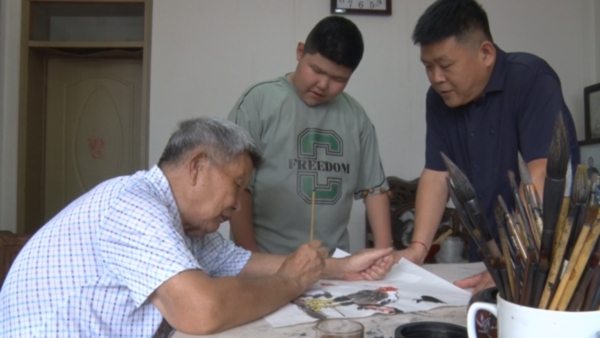张洪千为周连起、师宝金讲画。