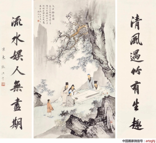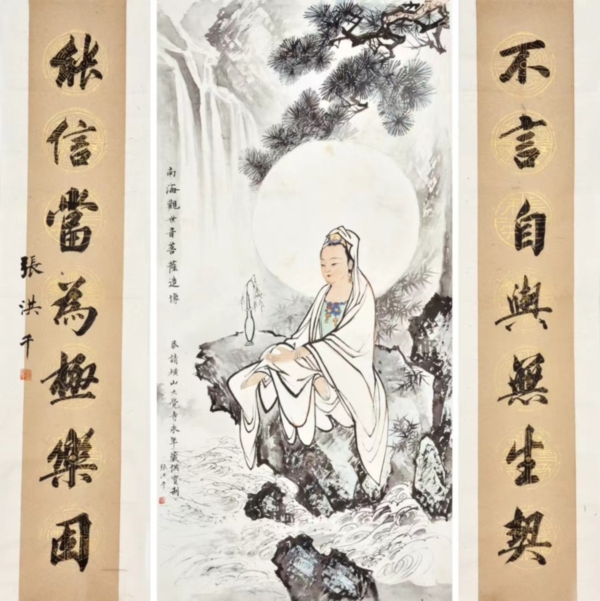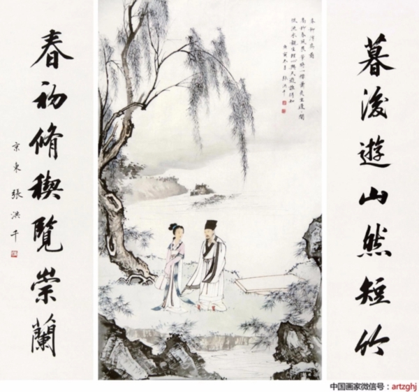 他自幼师从画家严六符习山水画,对宋代李成、刘松年、李唐及近代张大千、陈少梅的绘画技法深入研习至今。他的书法承蒙吴玉如指教,追随玉师几十载春秋。北京知名画家溥佺品评张洪千画是没有夹带、藏掖,方寸间尽显真本领、真功夫,正所谓“真杀实砍”。吴玉如先生更是题画为“能有静趣、出笔不俗、忌剑拔弩张,不易见耳”。