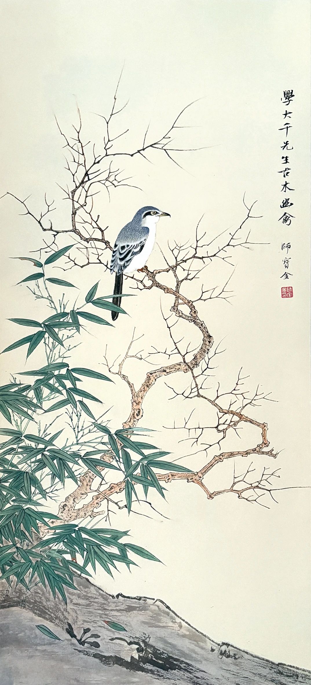 师宝金,1960年生于山东滨州,20岁定居天津。自幼自学国画,尤喜陈少梅一路风格,凭天赋与勤勉渐露画艺。2022年拜入北宗名家张洪千先生门下,艺术视野遂开。作品屡入展览:2020年12月入选天津市东丽区第六届“美在东丽”美术书法摄影展;2022年2月入选第七届“美在东丽”展;2023年2月入选“家国情·中国梦”东丽区文化馆国画优秀作品展(机关展区)并被收藏,同月参展第八届“美在东丽”展;2023年11月入选“奋进新征程·津门百佳”天津市第三届中国画、油画双年展;2024年5月入选“纸端缱绻·墨语留香”四区优秀书画交流展;2024年7月入选“翰墨展心声 共绘新征程”天津市第十一届老年文化艺术节百幅佳作展;2024年12月入选东丽区第十届“美在东丽”展,同年参展“凝聚新力量·筑梦新时代”新的社会阶层人士庆祝新中国成立75周年书画展。