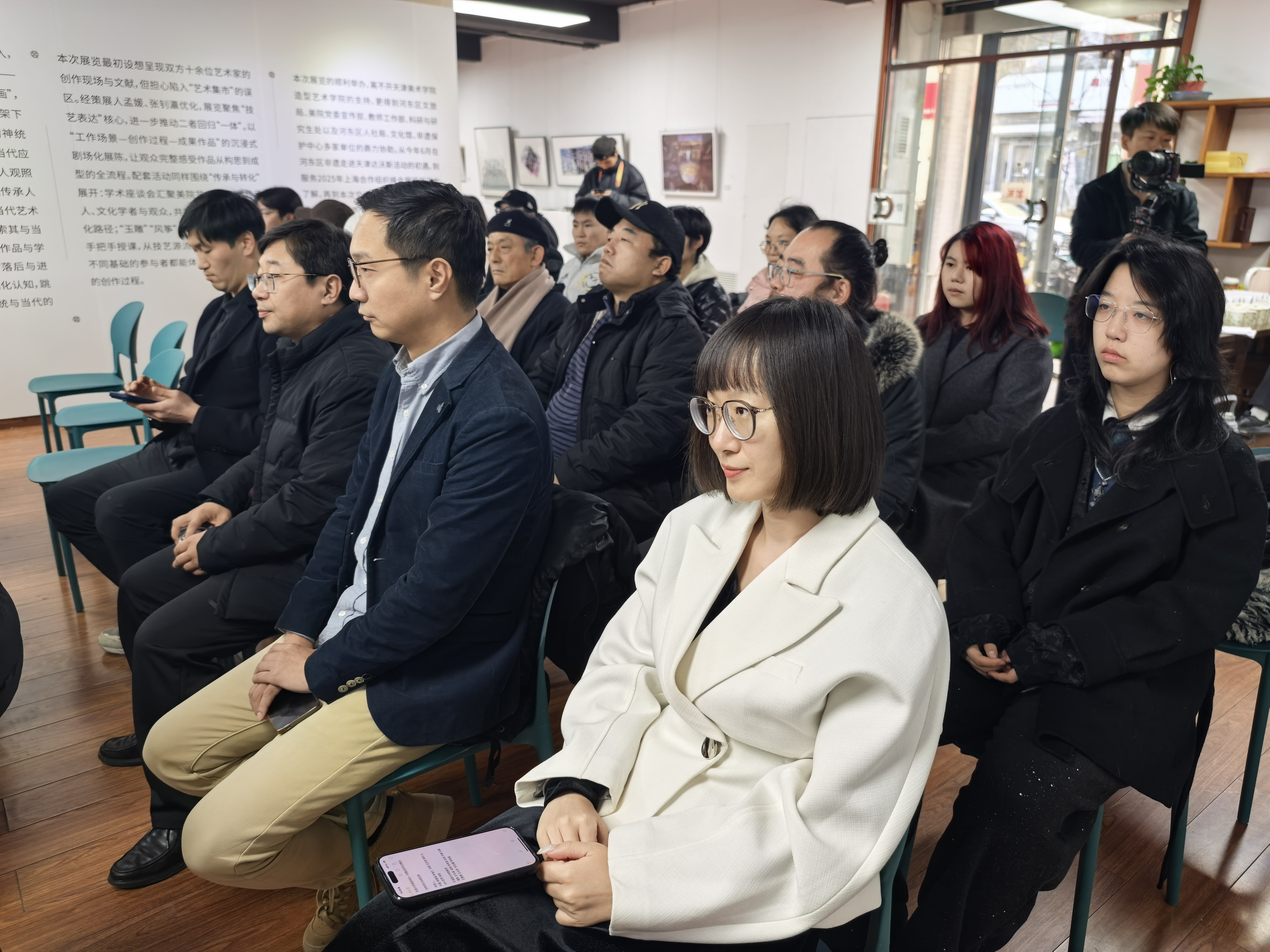 开幕式后,天津美院艺术家、非遗传承人、文化理论学者和观众齐聚一堂,以传统文化在当语境下的传承与创新性转化路径为议题,围绕创作理念、技艺等方面展开交流。促进传统技艺与当代艺术的碰撞融合,使不同的观点在交流中互鉴共生。